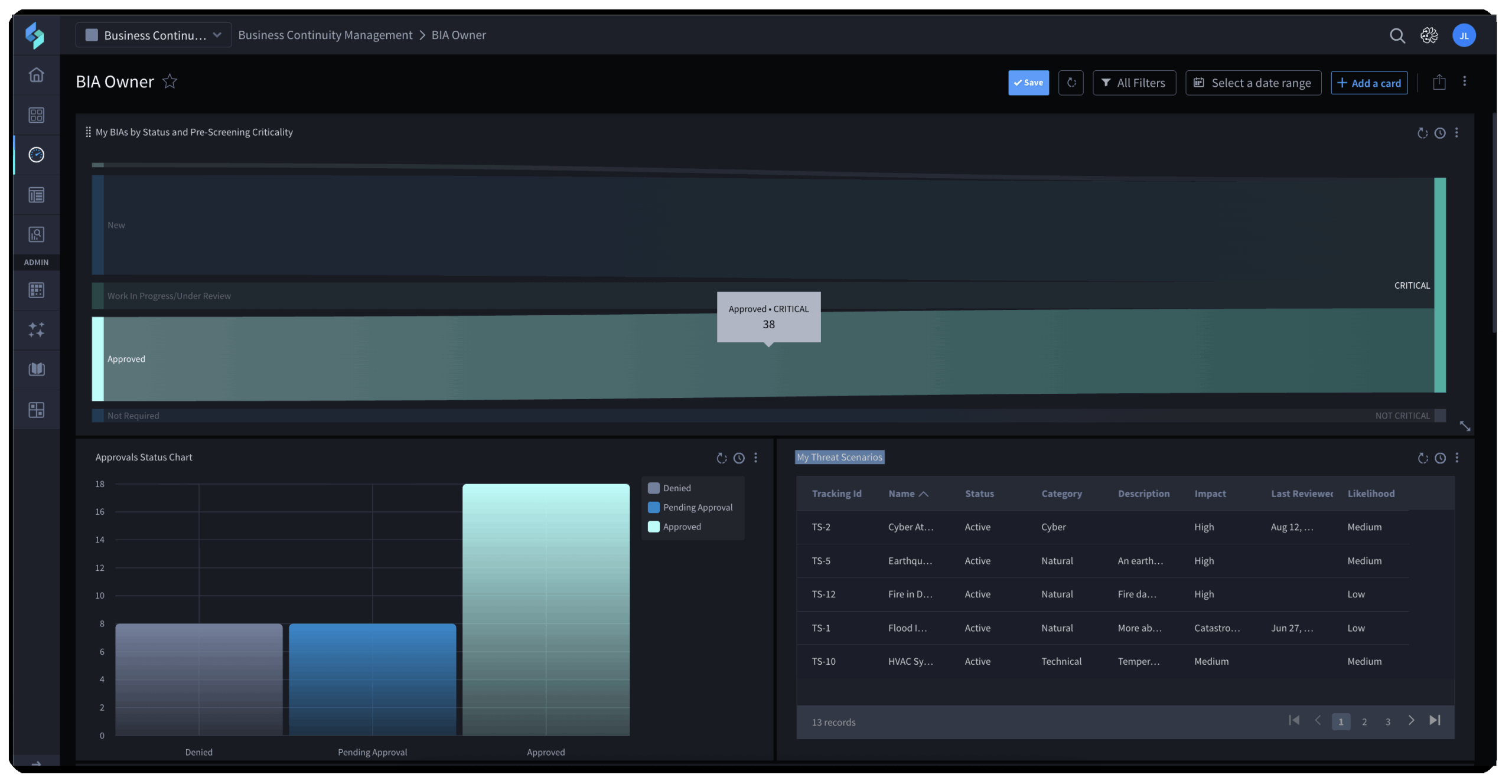 Gain real-time visibility into BCM posture, active incidents, and compliance status with stakeholder-ready reports for executives and regulators.