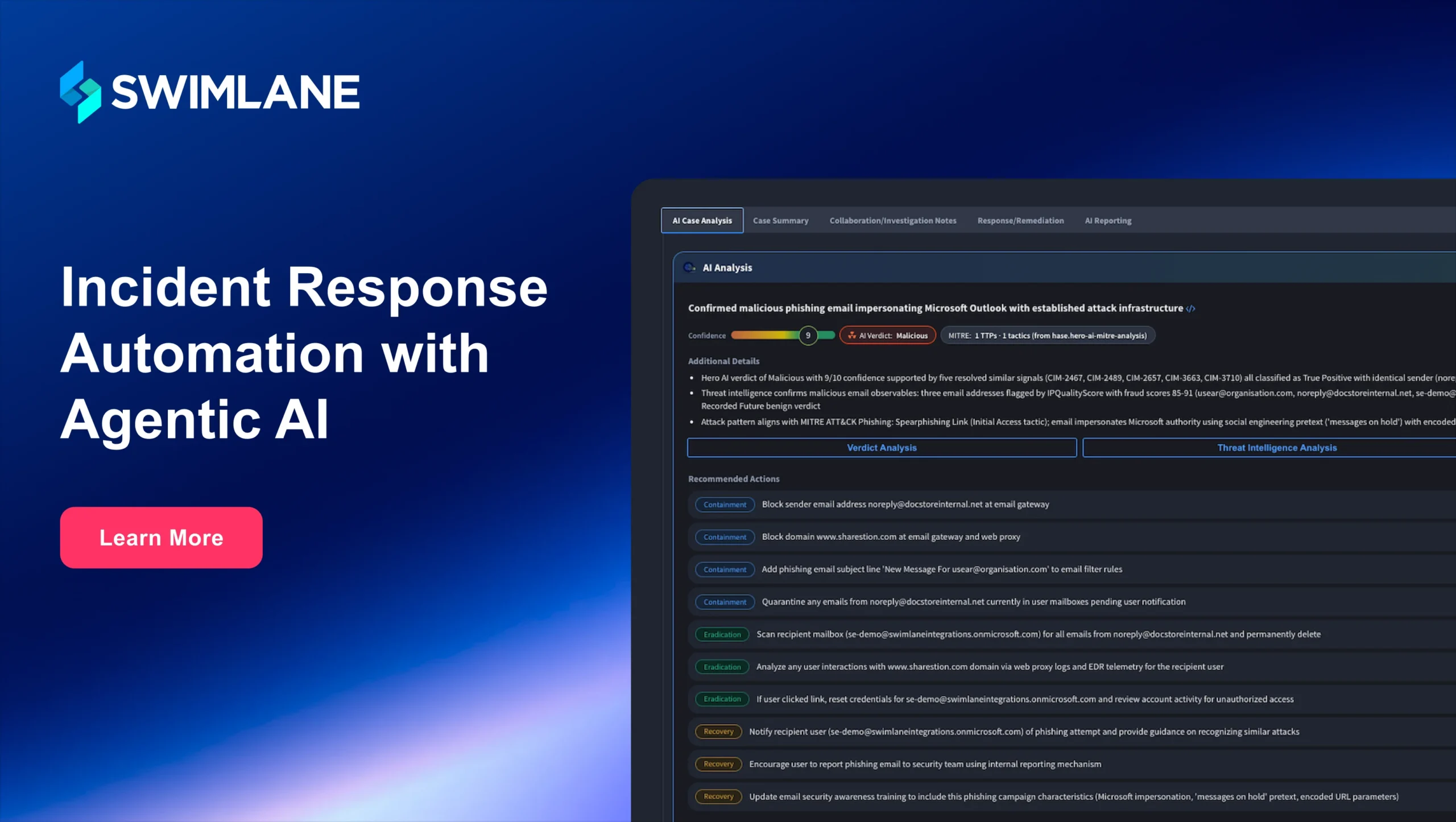 Swimlane Turbine integrates NTT DATA’s in-vehicle and OEM backend security sensors, enabling end-to-end continuous monitoring and proactive incident response for connected vehicle cyber threats. It provides automated compliance enforcement, ensuring adherence to evolving industry regulations, and implements a Zero-Trust security approach to safeguard data exchanges across all vehicle networks